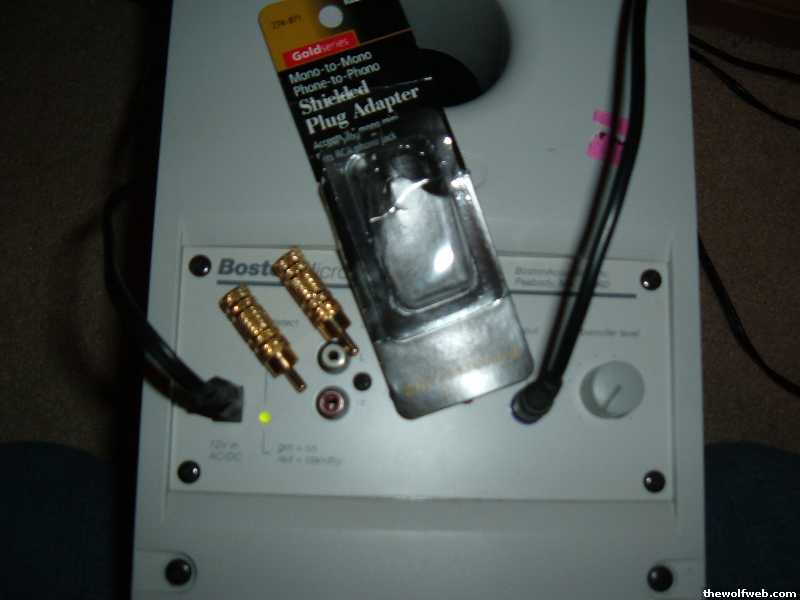 I got a free sub to replace the one I blew out and it has RCA's for the out to speakers but my desk speakers are mini's. I have the sub hooked up but the mono-to-mono/phono-to-phono sheilded plug adapter (that accepts 1/8 mini for a rca phone jack) is not working with my speakers. Any suggestions?