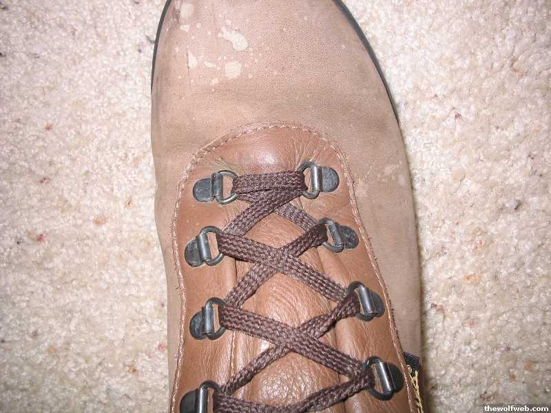 I completely wear out a pair of boots every 2 months, sometimes sooner. Mortar mix eats the leather, shoestrings, etc and oil/muriatic acid/gasoline eats the soles. That's of course assuming I don't break the metal in the soles like I have in my last two pairs of boots(one broke jumping from a scaffold, the other broke kickstarting a dirtbike)Interestingly, I wear out a pair of cotton jersey gloves in less than 1 day, and a pair of leather gloves in about 3 days, depending on whether I handle primarily brick or block.In regards to your question, I would just rough those suckers up with a wire brush and you'll never notice it, or just rub bleach on the rest of it to match.[Edited on February 28, 2006 at 6:10 PM. Reason : .]