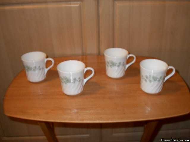 #2 Cups with Green Vine design (set of 4)