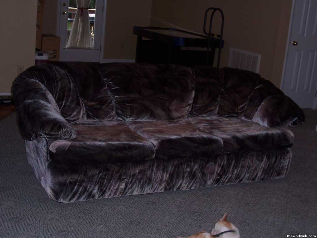 Velvet type material, mostly purple, great to take a nap on, sinks in a little but extremely comfy. Have to come get it by 4. I want $75 for it.