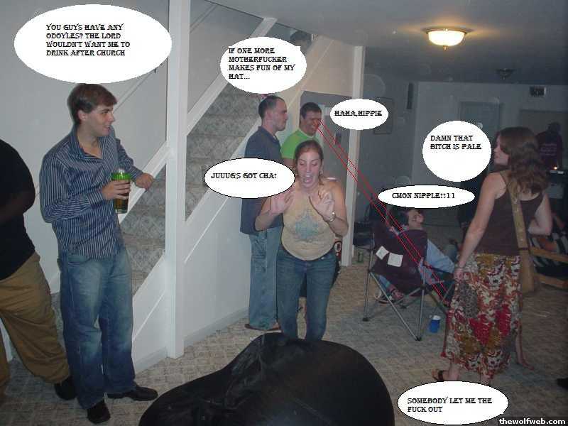 From Left to Right.Some drunk dude, my drunk brother, his weird GF, my step brother, my step sister's 40 year old boyfriend, and my 28 year old step sister.