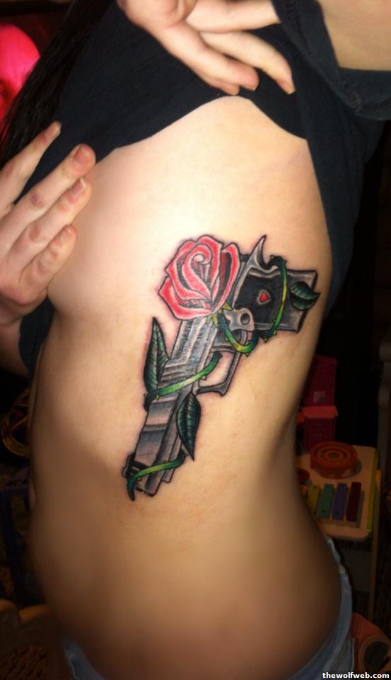 the gal with the pistol/rose should've turned it around so it at least looked like it was in a shoulder rig