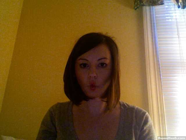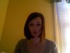ok i took a picture with photobooth but i am making a fish face because i have the WORST FAKE SMILE EVER and everyone calls me out on it HERE and IRL so...i made a fish face instead because i have a pretty bad ass fish face i am getting used to it. it is a little shorter in the back. SHE had me rocking the middle part (like gwyneth paltrow) which is ok but, middle parts just take me back to a heinous time in my life, so i'm keeping the side part:(I WISH I COULD HAVE GOTTEN IT COLORED TOO, but i'm poor so...boo on that. i want it to be darker. i like darker almost black hair)