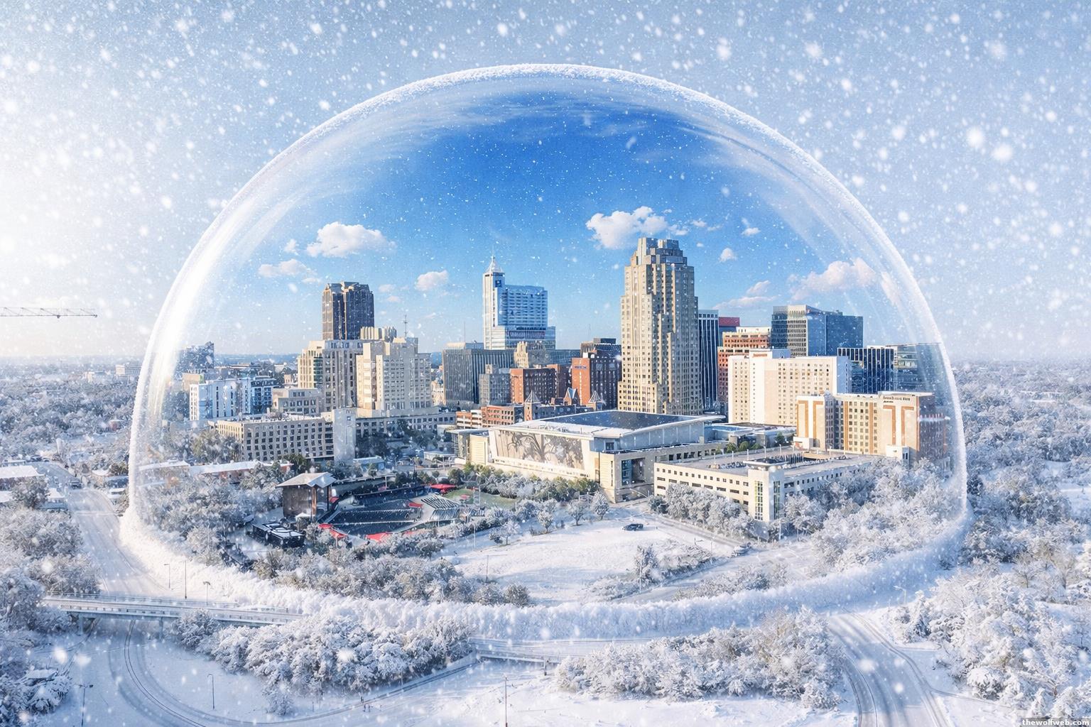 Would be a more impactful graphic if there wasn't snow on the ground inside the dome.