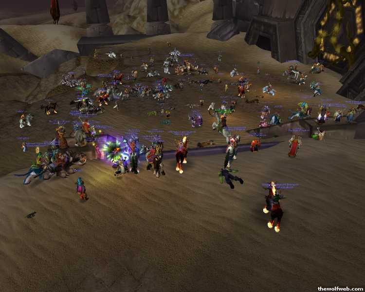 High-res image of fun at the AQ gates before people found out there wasn't going to be a show to see:http://wowgoodness.com/media/pictures/wow/WoWAQDoneMedivh.bmp