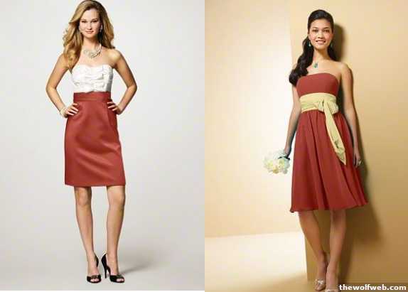 Gosh, I just love the way that first one looks with the white. I am sadface that one might be a problem because of the white. I know for sure I will not steal the show with my friend Dani because she will look amazing, I just don't want to be disrespectful of her and her day.I do want a brighter sash color if I do choose that second dress just to spring it up a bit. I LOVE burnt orange. It is one of my favorite colors.