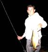 Got a pic without the facial hair, used some extra brightness & blur to bring the focus to his general outline rather than particular parts of the face, and re-centered the pic to make the fishing rod more suggestive. I think it captures a general impression of him that looks younger, even he's one of those people that don't come across well in picture.[Edited on May 7, 2006 at 11:04 PM. Reason : another]