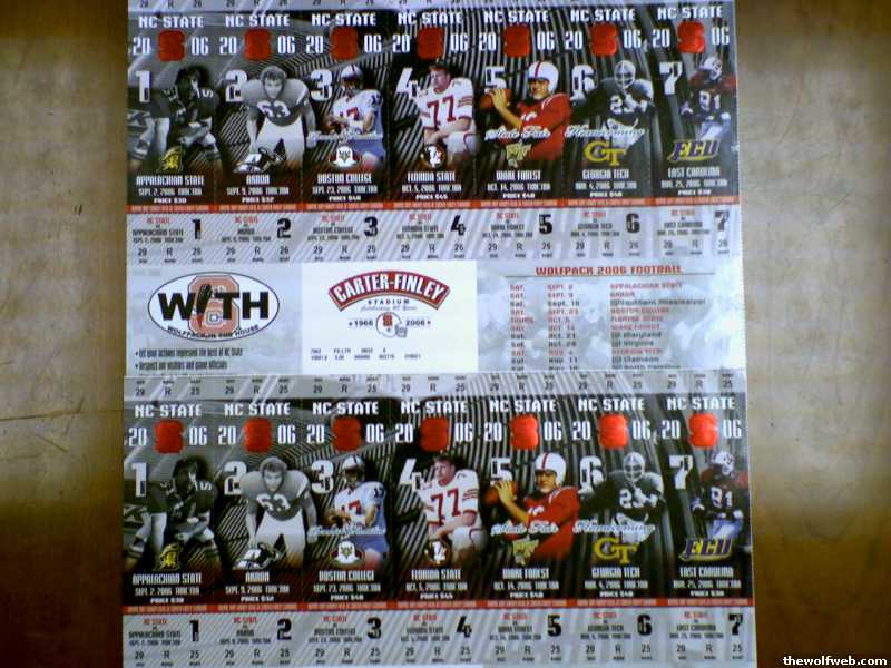 Ticket Registration for the NCSU vs. Appalachian football game opensAugust 25 at 12:01 AM and remains open until August 26 at 11:59 PM.All ticket information and the link to the online ticket system can befound at http://tickets.ncsu.edu1. When you first get to the site click on "Sign In" at the top 2. The username is your email ID 3. The initial login a pattern. The last four (4) digits of your SSN,your two (2) digit birth month, and your two (2) digit birth year. So,if my SSN is 123-45-6789 and my birthday is March 29th then my initialpassword would be 67890329. ****If you changed your password last yearit will remain the same.****You will always be taken to the Student Information Page, where you canupdate your information. Be sure to update your password the firsttime!4. On the left, click on "Request/Claim Tickets"5. Click on the game you want to attend. 6. Request your ticket - be sure to include the email address you want anotice sent to.7. You will receive an email at the end of the request period alertingyou to your status. If you won a ticket, you can go back to the"Request/Claim Ticket" link and claim and print your ticket. 8. You are allowed to cancel your ticket up until 24 before game timewithout penalty. Just click on "Cancellations" after you have claimedyour ticket and it will allow you to cancel.9. If you did not win the first drawing, you will be automatically addedto the 2nd drawing in case people cancel their tickets. You will get anemail with your status after this time. 10. Group seating arrangements are explained in the "Ticket Policy" PDFlink on the left navigation window.BE SURE TO BRING A STUDENT ID WITH YOUR TICKET ON GAME DAY!THE ID NAME DOES NOT HAVE TO MATCH THE NAME ON THE TICKET SELLING STUDENT TICKETS WILL NOT BE TOLERATED!