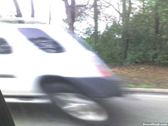 Just passed a white xterra near the parking deck at Reynolds..12:15pm.. heading onto Western ...phone pic to come shortly.