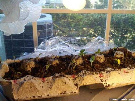 As stated earlier, we still live in an apt as we wait to clean up the mess with closing on our house. All of our exterior windows on the front of the house end up being kind of shaded because we have a covered porch/patio on both sides of our apt front door. Should we even try to grow any of our seeds in an egg carton now or should we just wait until we move to plant the seeds we have outside? (or maybe by that point pick up some seedlings). We picked up some seeds from Whole Foods that our friends always use and get some great tomatoes and squash and we are getting antsy haha.