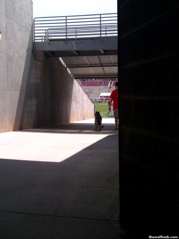 Say hello to Mrs Wuff!She is a husky Keeshond mix. Looks EXACTLY like the wolf on the 2010-2011 football poster. And we managed to get her on the field.