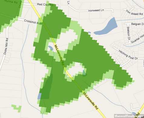 Raleigh and Charlotte is much more rounded than Greensboro. That's the big joke around here. It looks like they took a paintbrush and just splattered a map when they designed the network. The colors basically mean that someone has drive-tested it and got a signal, but that still doesn't mean it will work. Especially this time of year when all the leaves are on the trees. Hence the 14 day return policy. If you get it home and it doesn't work, you get a refund.