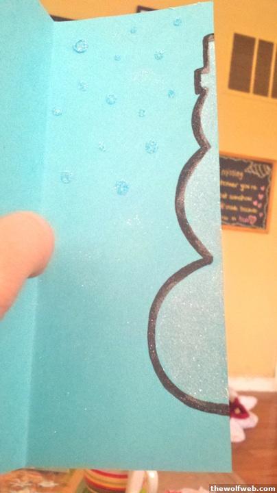 Got inspired for make homemade Christmas cards courtesy of some ideas on pinterest (not quite done with this one yet)(still need to write my message)(the glitter looks clumpy in the pic, but looks better in person)