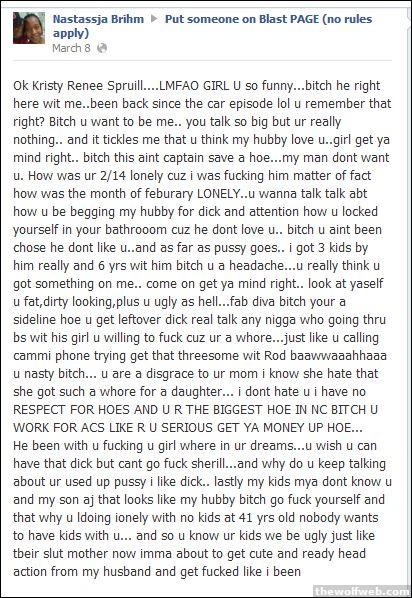 **************************UPDATE***************************************I hired a PI on tww. Got some info. This lady who owns that car works at WRAL (YYYYYYEEEEESSSSSS!!!). Nastassja B. was mention on facebook's greatest invention 'Put someone on Blast'. The weirdest thing is that Nastassja is the wife, not the gf. anyway, being the strong woman she is, she relied on her inner gangsta during these troubling times.unsatisfied with her lack response she fucking threw downthat is all I could read in one sitting, feel free to add your favorite comment from : https://www.facebook.com/pages/Put-someone-on-Blast-PAGE-no-rules-apply/146049162089093?sk=app_2373072738[Edited on April 18, 2012 at 8:59 PM. Reason : .]