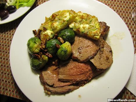 ^^^ Standard wing sauce: butter, Frank's, Sriracha, a little bit of sugar and vinegar.^^ Leg. My roasts always seem to come out of the oven either over or under done; rarely just right. I never seem to be able to take the temperature in just the right place.^ Nom!