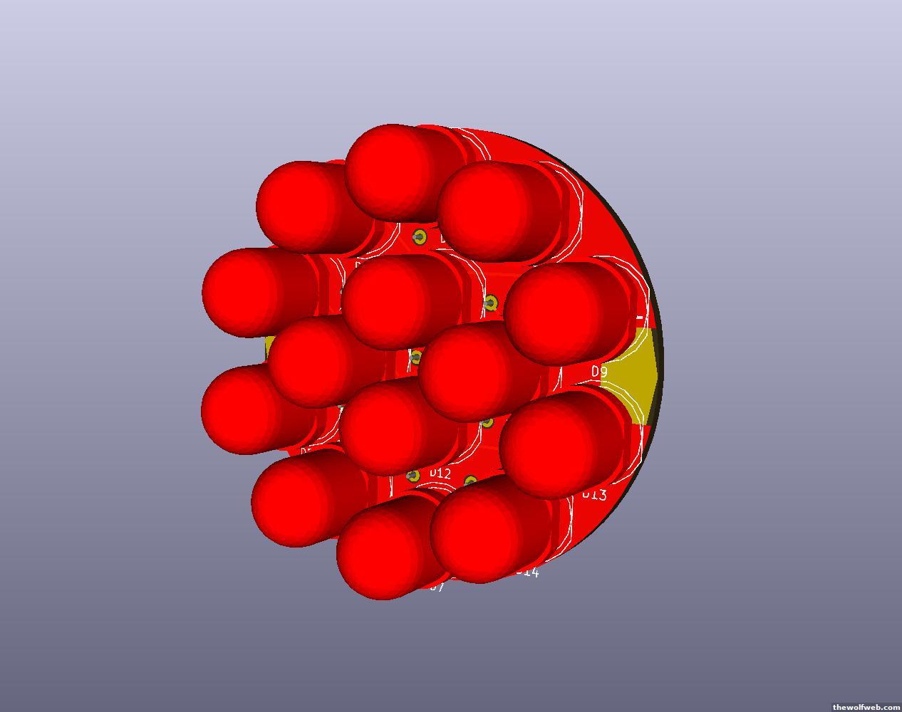 Basically a toy for my kids.I made a railroad signal light as part of a Halloween costume. I wanted to make it blink correctly. So, I got a relay and NE555 breakout and got that all working but I was unhappy with any of the lights I could find. Just about everything wants to run on 12 volts and I'm trying to run things off 5 volts. Since it's so dirt cheap, I designed an array of 14 10mm LEDs that fits on a 2 inch circle in KiCad and I'm having 10 of the boards made. 13 bucks shipped. Amazing. I'm going to spend more than that on LEDs and resistors.
