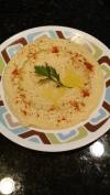 Homemade hummus with all organic ingredients. VERY VERY good. Turned out way better than I anticipated. I am having naan with it. So d-lish!