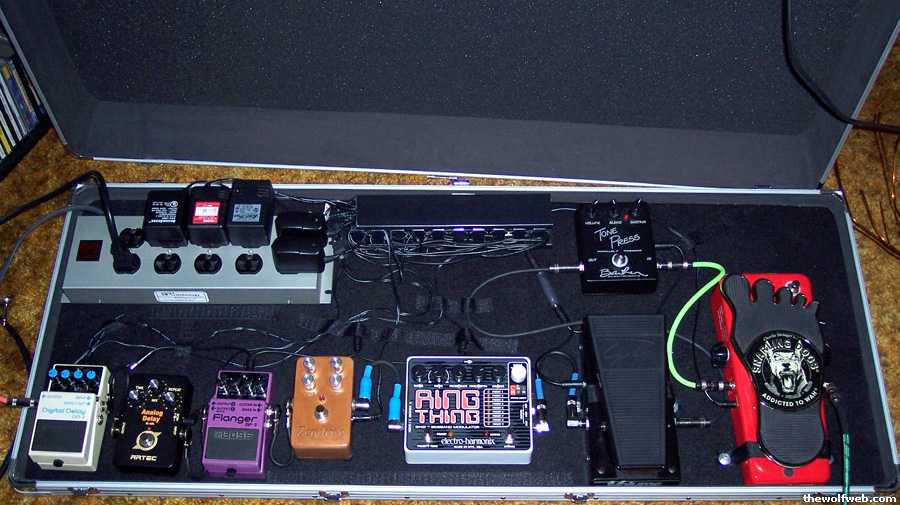 recently re-did my pedal board. thought I'd share.snarling dog whino-wah>barber tone press>george dennis vol pedal>EH ring thing>hermida zen-drive>boss flanger>artec delay>boss DD-3 delay.
