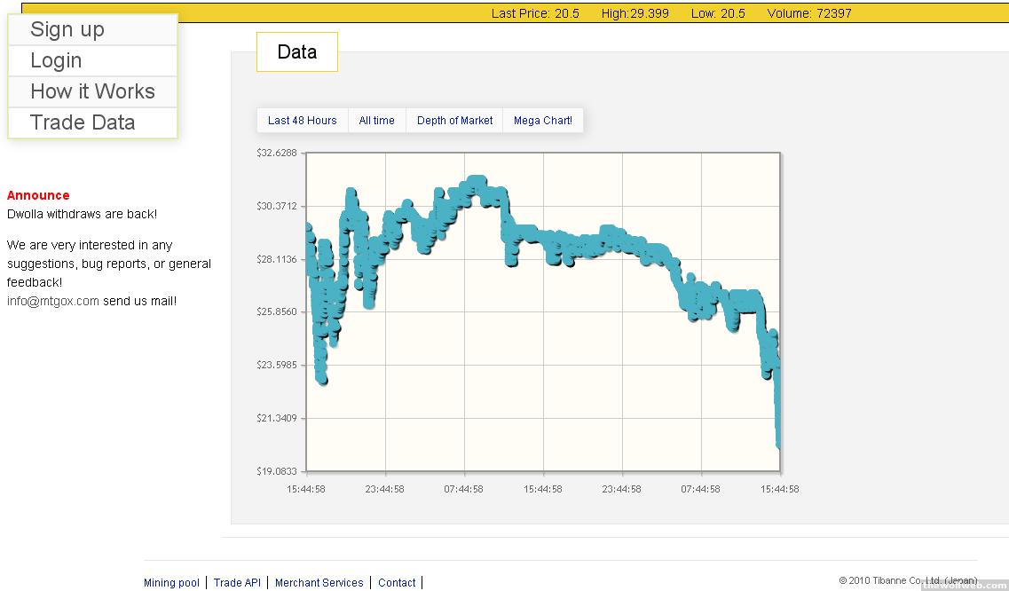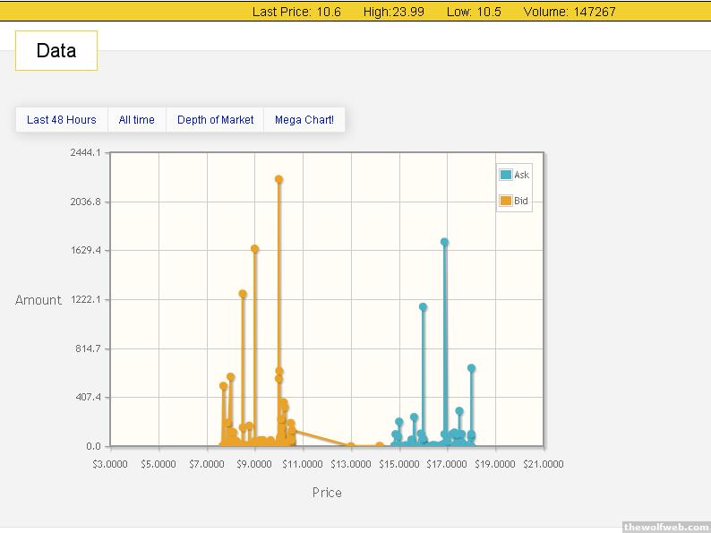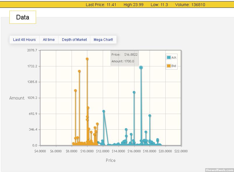 you know, I'm thinking about buying just so I can play with the mtgox trading api. I've always wanted to write a bot to trade some shit, but never thought it'd be this easy.^I'm curious too. From what I can see, it took only 10 minutes to go from $20 to $13. But then it hit $20 again within 20 minutes. Maybe someone had set up a bot to sell off automatically at $20 (if you look at the historical price at http://mtgoxlive.com/orders, the crash seems to coincide with $20)? I guess that would have triggered a shitton of buy orders, but I have no idea how fast everything responds.[Edited on June 11, 2011 at 3:52 PM. Reason : asfdadsfasdf]