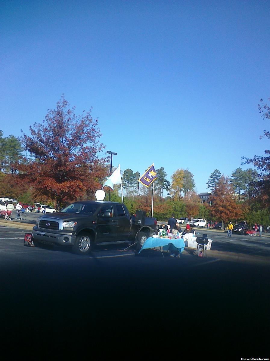 not sure of a better place to put this, but tried to take some pics of dbags tailgating near me on saturday. the pics arent great, but this first one shows the truck flying unc AND lsu flags, one of the guys was rocking lsu gear...at a state/unc tailgate. nothing worse than wearing the colors of a team not playing to a game.i look up a few minutes later and the guy on the right has wrapped himself in an ohio state flagi would bet any amount of money that these guys are the type that say "oh i root for unc in bball and osu/lsu in fball." friggin dbags.