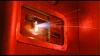 she's looking up at teh ceiling and she sees food falling down