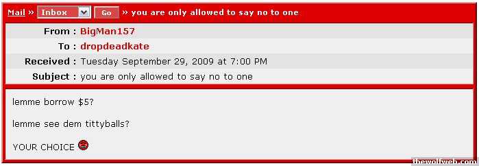 From : drunknloadedTo : NCSUWolfyReceived : Friday October 3, 2008 at 9:48 PMSubject : HAYYYYYYYYYYYYYYYYYYYYYYY SEXAYYYYYYYYYYYYYYYYYYYYso i hear you've only fucked 2 or 3 people before...that makes you not a slut