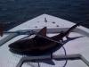 that shark was a lil over 60" and only weighed about 45lbs. i was able to lift it by the top fin and tail with no strain. we have some big bait for tomorrow and 200lb test steel. i hope to finally land one of the big ones that we have been breaking off. too windy to run off shore so the next best thing is catching some big sharks.