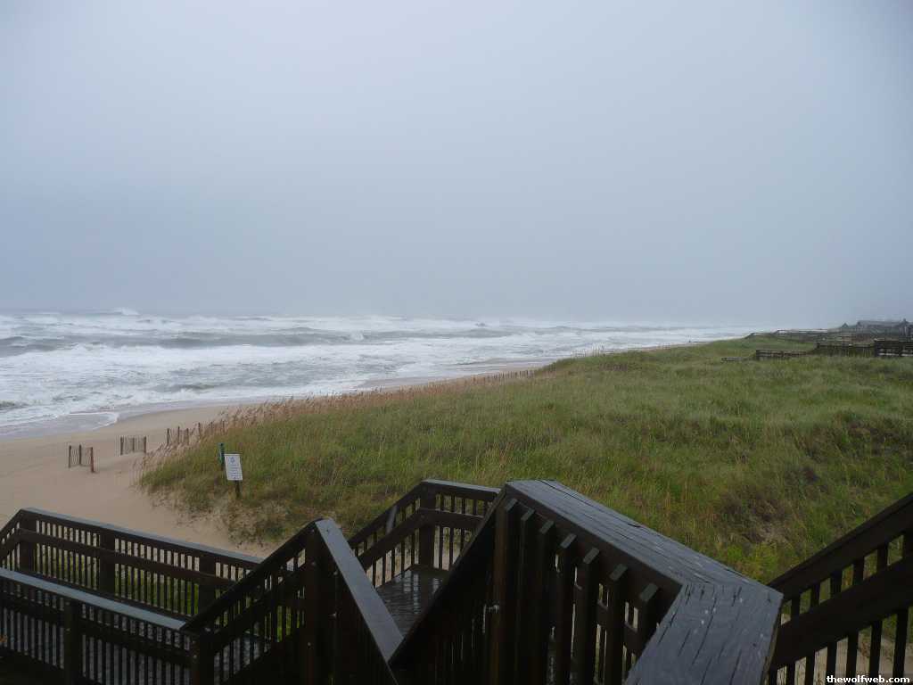 We just came in from off the beach access in KDH. There's virtually no rain and the wind isn't blowing any harder than it does in the winter.