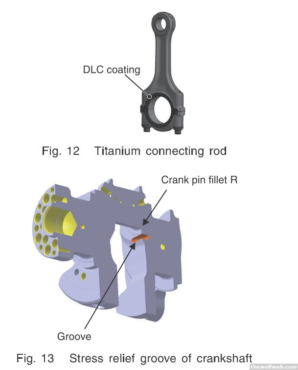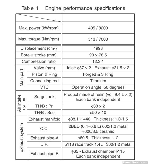 Honda recently introduced a new hybrid NSX concept car. They had originally planned a 5 liter 500hp V10 engine with some interesting technology choices. There's a lot to say about this engine but in the interest of brevity I will probably break this into two parts and focus mostly on charts and diagrams rather than written explanation. This engine was in a few s2000 mules before Honda killed the project.The engine was targeted as a fuel efficient and high performing V10 engine that can be daily-driven and run hard on a track. So right now I'll cover some performance technology introduced in Honda's literature on the subject, and in the future I will cover some of the fuel efficiency and emissions technology. The engine is a short-stroke V10 designed to be high revving:A series of reliability studies determined the frequency under which the engine must perform in US daily driving conditions, Autobahn high-speed conditions, and track conditions:Key to this performance are optimized intake and exhaust systems as well as bottom-end enhancements. The intake system uses independent intake and exhaust systems for each bank:The intake system is two-stage on each bank. For lesser intake airflow, a single butterfly controls airflow for a given bank. For high performance driving individual throttlebodies downstream of the plenum chamber are used: This design allows more even mixtures under low loads for emissions purposes, because the individual throttlebodies could degrade over time due to wear or carbon deposits. For the exhaust system, each bank uses a 5-1 header with a merge collector: For low weight and high strength, titanium connecting rods were adopted. A Diamond-Like Carbon coating reduces wear on the the thrust surface. The crank had special stress-relieving grooves adopted from Honda's F1 program. See the diagram below:I will cover the fuel efficiency technology such as the special knock & misfire control system later.