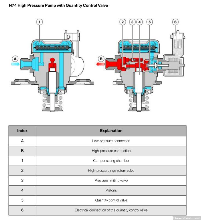 I posted this in the 335 thread as well: It looks like the N20 has a different style high pressure fuel pump than the N55/N54. It looks like BMW has two styles of HPFP: the 3-plunger style, used in the N54/N55 6 cylinder engines, and the single plunger style used in the N20 (4 cylinder), N63 (8 cylinder), and N74 (12 cylinder). Here is the N54/N55 style:and here is the N63/N74/N20 style:Both styles are demand-control pumps which is now a standard characteristic. A demand-control pump has a valve controlling how much fuel enters the pump, as opposed to having some kind of pressure relief system after the pump outlet like you would find on early direct injected engines, such as the early VW 1.4 GDI engines. For reference, here is the HPFP of a 3.5 Ford Ecoboost engine:Here is the early VW pump:Note that this is a radial pump design (camshaft lies in the middle) with no demand control valve.