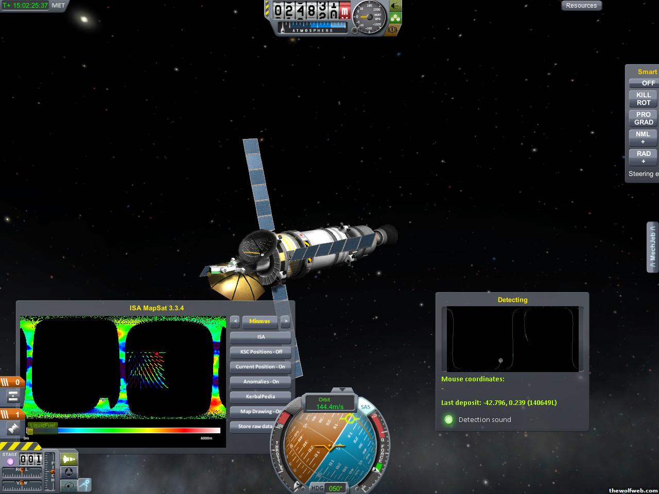 ok... KSP 0.19 came out. I am starting over!Here is my first real mission... scouting kethane and generating topographic maps of the various bodies. With a single probe, i've mapped Kerbin, Mun, and am currently mapping Minmus. Hopefully there is enough fuel to get me out to Duna. (if not, i'll send a second probe Also, i just realized that the game will take screenshots for you by hitting F1!
