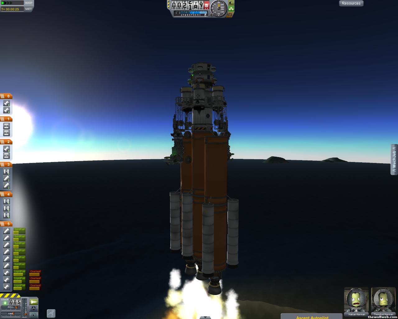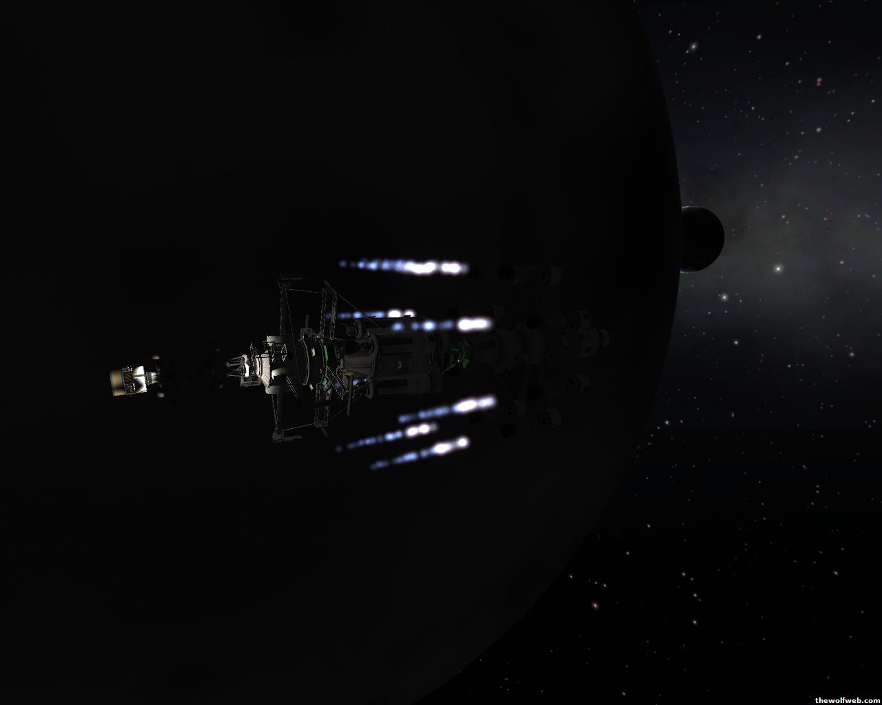 I played some this evening. Made a bigass rocket and got it in orbit, and then headed into open space. I need to figure out how to stabilize my rocket more. My big initial stages are able to bring what I need to orbit, but it does not handle well. I have SAS and ASAS on them. I'll try to remember to do screenshots next time I play.
