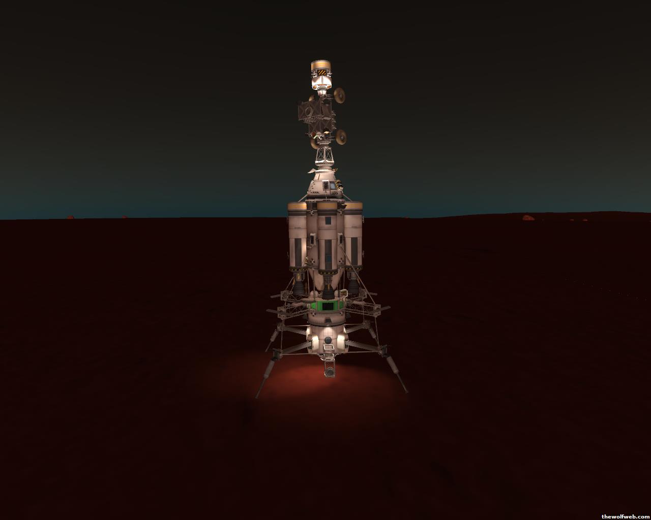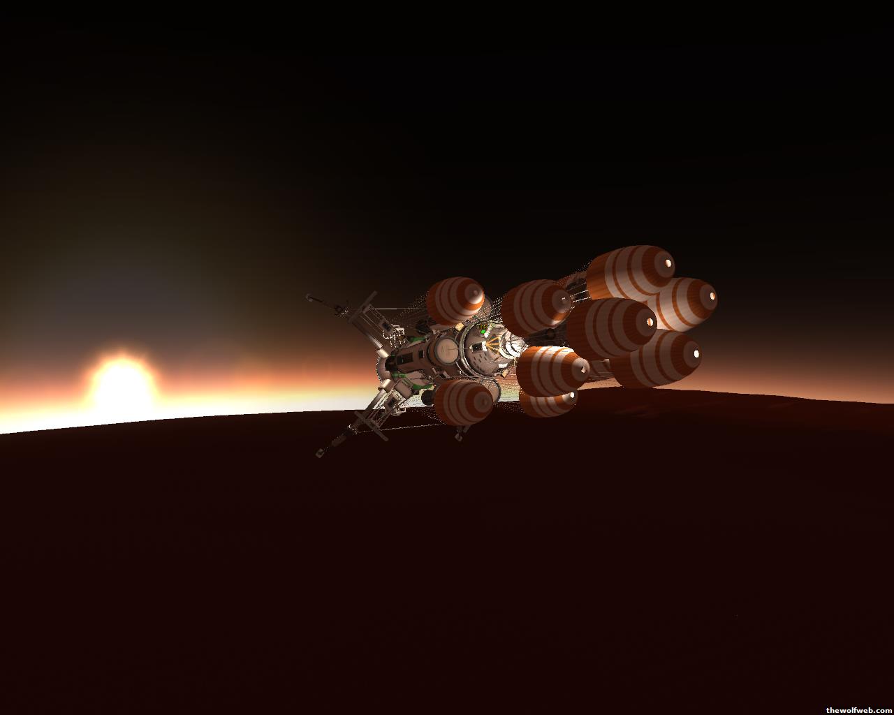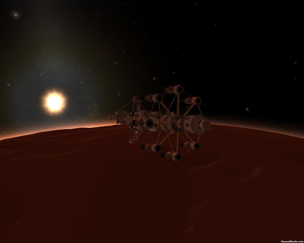 Kerbal time again!This time I decided to send two trips to Duna. One a "scouting mission" and the other a full on Kethane refining station. Here is the mining operation (which was the first mission built/designed)1. Filling up my ship from my Munar Kethane plant. Note the assembly of the vehicle... The lander et al is to the Left and the "mothership" is my repurposed heavy lift sky crane as the main propulsion stage. I added a kerbal storage container so they wouldn't be cramped in their one small capsule the whole trip...2. En route...3. Aerobraking to a stable orbit at Duna... I ended up having to dip my periapsis all the way to 8500m to bleed off all the speed I had.4. Separated my lander. I ended up undocking the rover and attaching it to the top of my lander so the parachutes wouldn't rip it off, and so I could take my time undocking it.5. Landed and mining away!I haven't gotten any farther than this... Shouldn't be any problem taking off and re-docking with the mothership (although I suspect that I could make it all the way back to Kerbin with just the upper stage of my lander, but what's the fun in that? Those kerbals need some room to stretch their legs on the way home!)