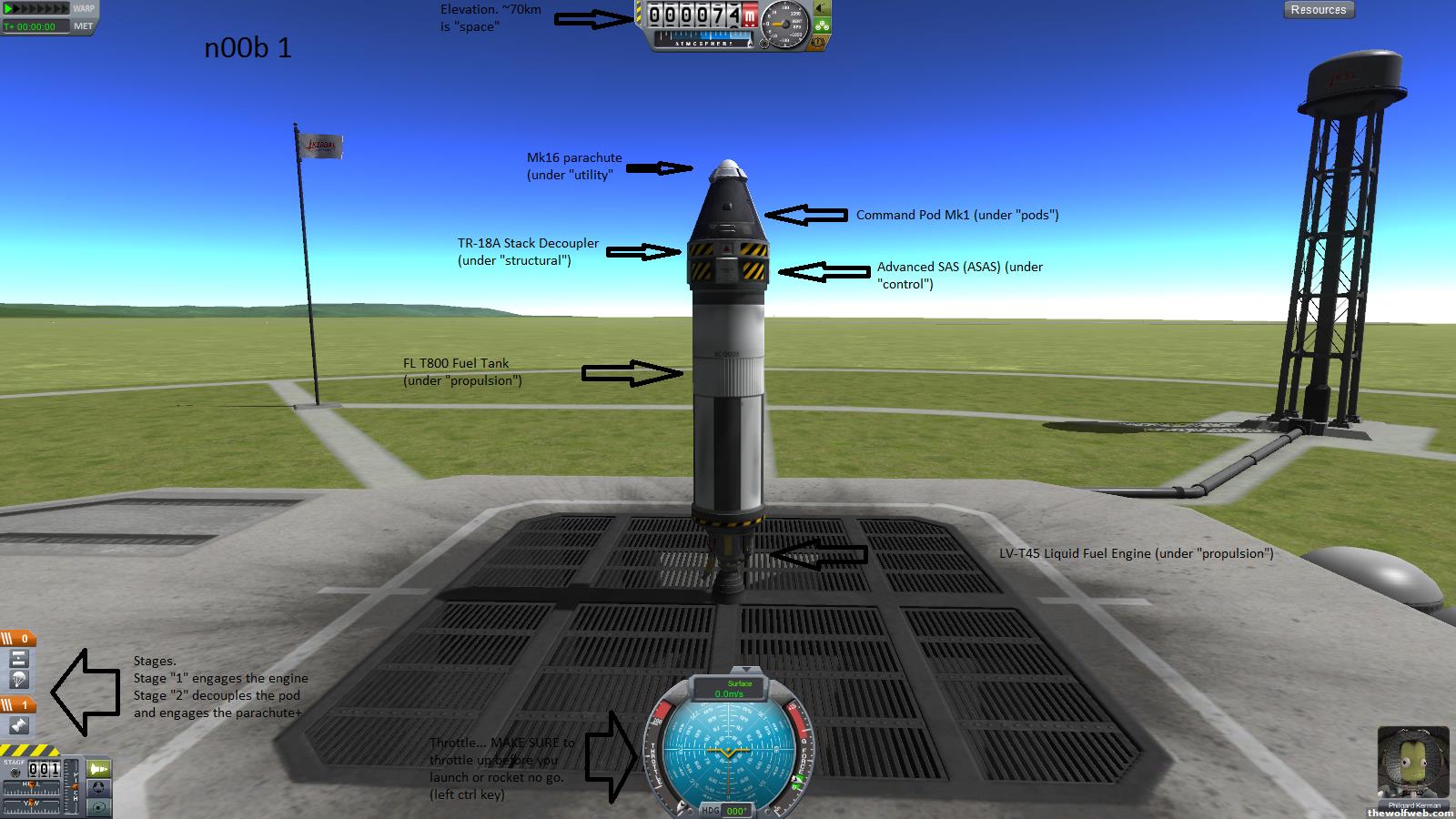 yeah... i just looked back to the first few posts of mine in this thread when I discovered Kerbal.Here are the things that would have made it a lot easier for me...Rocket Design:1. Capsule: start with the one-man dark capsule.2. Add a decoupler (this will separate your capsule from your rocket)3. Add ASAS (this helps to keep your rocket steady.)4. Add an appropriately sized liquid fuel tank underneath the decoupler5. Add a liquid fueled engine under this. 6. Slap a parachute to your capsule. (this will reduce the amount of lithobraking your capsule does!)LAUNCH THIS. It might not make it to space, but it's a good rocket to get practice with the...Controls: (these are the bare necessities... you should be able to fly your rocket with these alone... the other controls will come later)wasd keys point the rocketleft shift throttles upleft ctrl throttles downspace bar moves through your stagest turns on the ASAS (this is the thing that keeps your rocket steady... to turn your rocket turn ASAS off.)m goes to the map! (i had no idea the map existed when i first started which led to things being super hard!)Strategy: do these missions to get used to it before moving on1. fly your rocket straight up until it's out of fuel. decouple your capsule. parachute and land.2. fly your rocket straight up until 10k meters. Then turn EAST ever so slightly. (this is called a gravity turn... it will give your rocket a parabolic arc, eventually leading to an elliptical shape.) This mission should not get into orbit... do this a few times to get a feel for your rocket.3. Try to reach orbit. I doubt this rocket will make it, but once you are to the point you learn to control your rocket, you can at least give it a shot.AFTER THESE:Go back into the vehicle assembly building. Add another stage to your rocket... put a decoupler on the bottom of your engine, add another liquid fuel tank (a larger one perhaps) and another engine. You might need to play around with the staging, to make sure the right things happen at the correct times, but basically the things at the bottom of the staging happen first. Run through the previous missions with your new 2 stage rocket. get it into orbit. take screenshots. post here! (F1 will automatically take screenshots!)