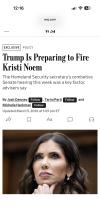 So noem was fired while she was giving a presentation and didn’t know she was fired. Luckily for her no audience member pointed it out while she was talking. She was speaking on future actions as her current role after the announcement was public. Typical Trump. The rule that he always stabs people in the back has held true. So far only miller has escaped.