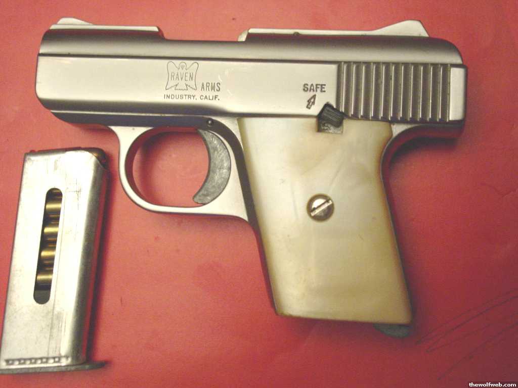 Raven Arms MP-25 in .25auto. Chrome plated, imitation mother of pearl grips. 1 mag, feeds hollow points just fine. Comes with small leather holster. Looks to have been shot only a few times.$150Mush have current CCW or valid permit to purchase.[Edited on May 28, 2009 at 8:48 PM. Reason : pics]