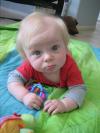 Tess turns 5 months tomorrow (18th). Due to HER insistence, we've started baby food. She would get so pushy when we ate in front of her and wants to taste EVERYTHING.http://www.youtube.com/watch?v=avjrCtie8IkShe's also rolling and squirming all over. She wants to crawl but hasn't figured it out yet. On a cute note, a couple of the older infant boys at daycare tried to grab at her while she sat in her car seat. She responded with a few swift kicks.... My girl, fighting off the boys already. :-P