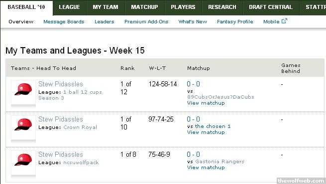 midway through the season and I'm in first place in all three of my fantasy leagues