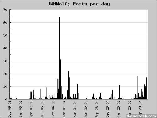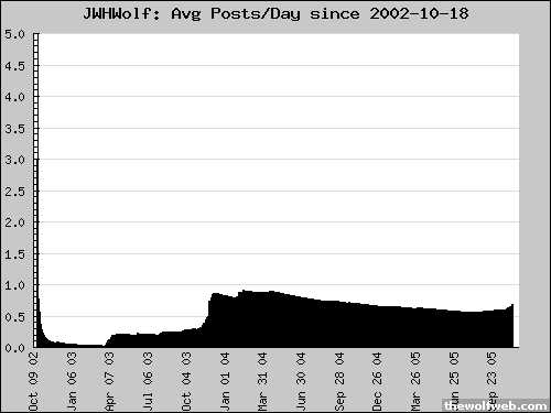 Amazingly, apparently I was posting 300+ post a day last December? Then again, I was working at a job with absolutely NOTHING to do. And as you can see, work's been slow once again the last month or so, as shown in the posting increase since late september...
