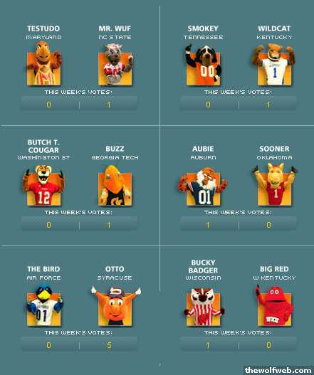 Mr. Wuf is 1-1. Keep voting and let's get the win against Maryland!