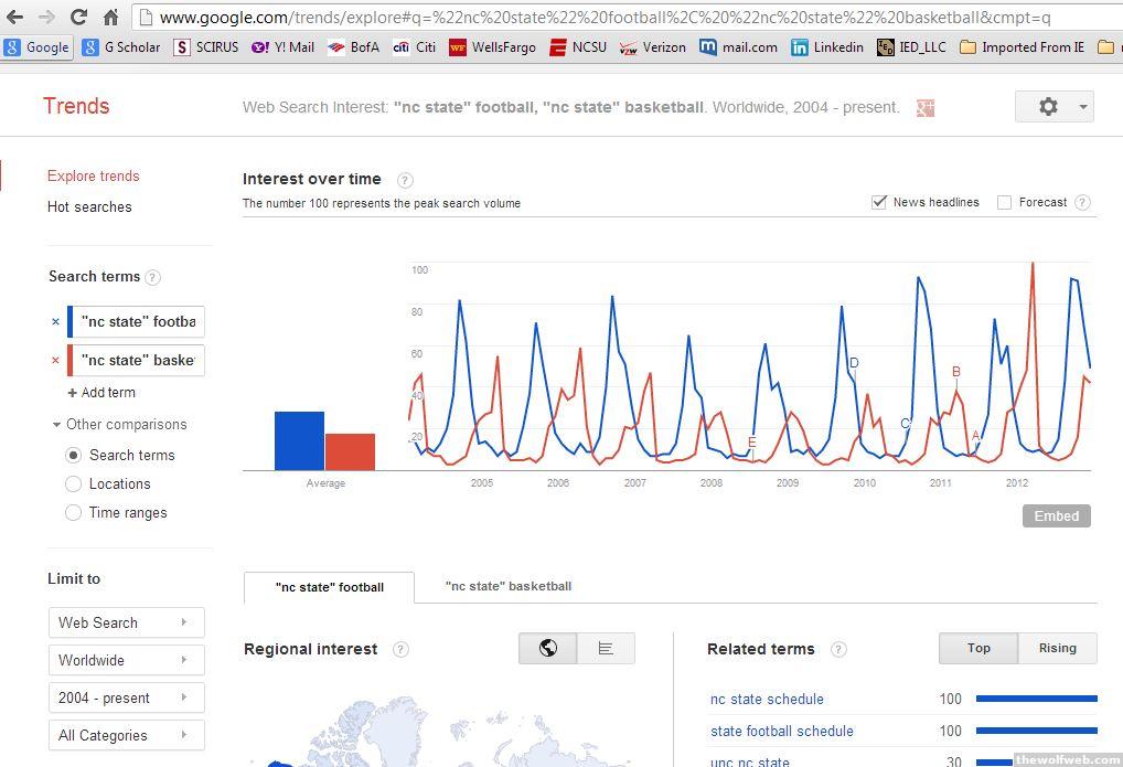 I know this doesn't really mean anything, but google trends seems to indicate that we were more of a football school until Gottfried came along...