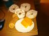 I love me some damn almond butter2 bananas + 1 egg + 1-2TBsp almond buttermash and mixmakes 8 smaller sized pancakes....FREAKIN' Delicious tooI added blueberries to mine