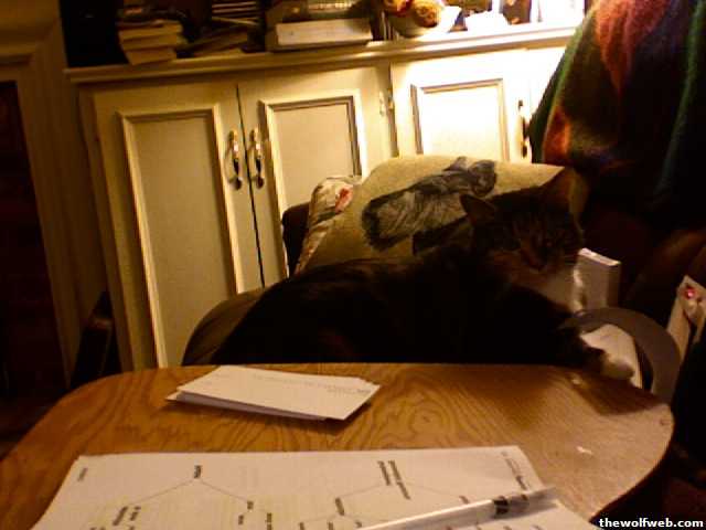 mine are both all over me latelyone does not like to snuggle or be held or even to be petted much. he doesn't regularly purr at signs of affection. now he's all "omg i must get in your lap and in your face and on your desk and prrrrrrrrrrrrrr." the other one only likes FykalJpn and regularly bites me. she is trying to climb on my back because she is in the chair behind me and not getting attention.and this is after i started spending more time at home.