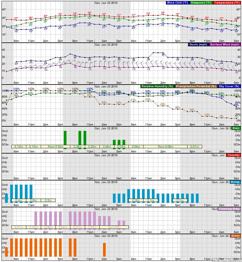 look at those wind gusts, if we have snow or ice on trees be ready to lose power[Edited on January 22, 2016 at 6:53 AM. Reason : .]