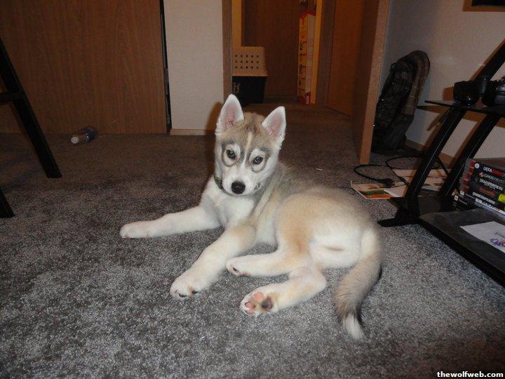 ^too cute!!Day I brought him home. 2.5 months ~15 lbsToday 10 months. 64 lbsThe GF got him this for halloween.