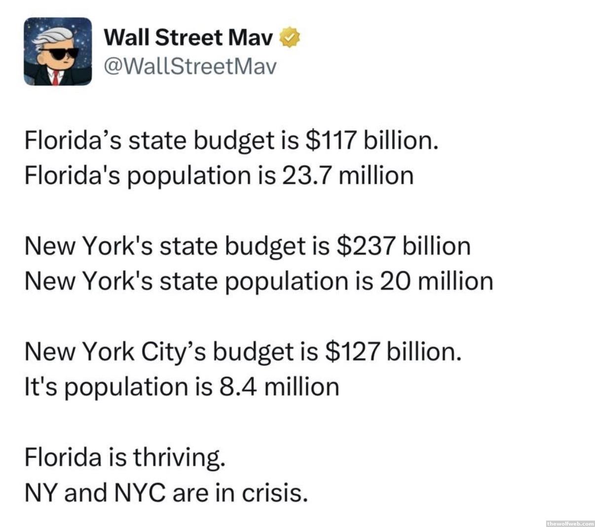 ^^It bothers me that their logic seems to be: Florida's thriving because they're living so cheaply! Sleek and efficient....Instead of: New York is thriving because they can afford so many programs for their own citizens' welfare.Or am I missing something?