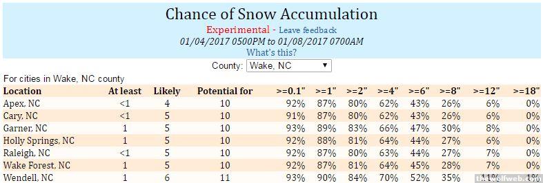 this is probably your best source of reliable, not overhyped data: http://www.weather.gov/rah/winter
