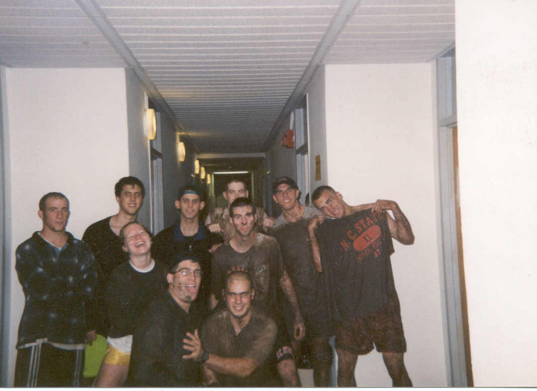 I was a junior in Syme when Floyd came through. I just remember that lots of people went out to the court fo carolinas and slid down the hill during the hurricane so the next morning when i went to get a shower, the showers were caked with mud. It was also kinda funny how everybody lost power except NC State. Most people were in the dark when Floyd came through. We were sitting back playing Tekkan 3 and surfing the internet.