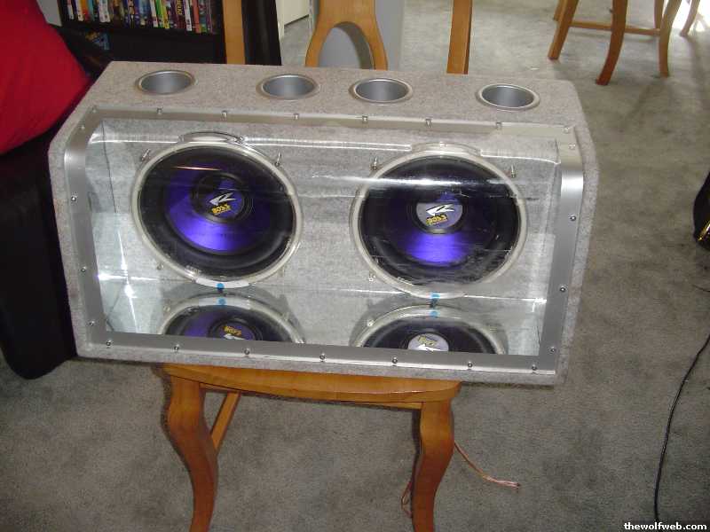 4. 12'' sub box. Sealed. 1.2 cu.ft. Built to fit behind the seat of a sedan, but can go anywere.