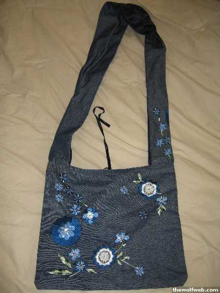 8. Denim bag with flower embroidery, 12x8 silk lining $2